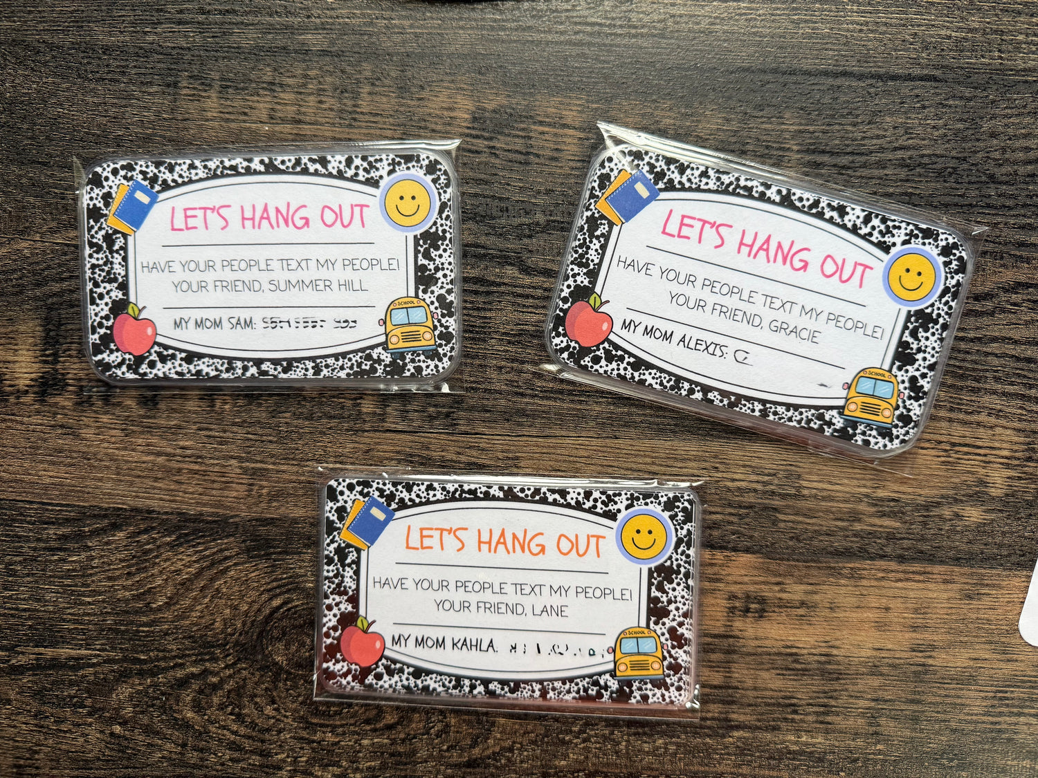 Help your kids stay in touch with their classmates with cute hang out cards! Personalized cards that are fully laminated!